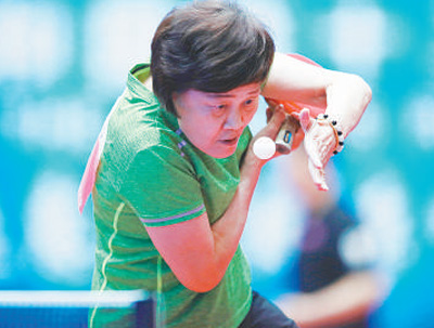 江蘇選手周新寧在女子單打60歲以上組比賽中。W7q安康新聞網