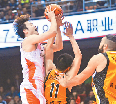 10月29日,山東隊球員丁彥雨航(左一)在比賽中上籃。cyM安康新聞網