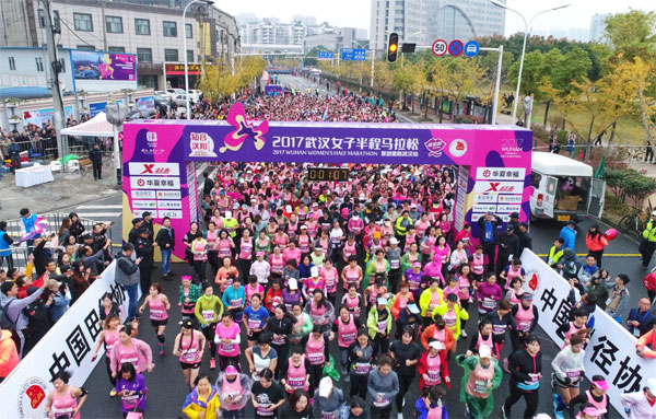 人民網(wǎng)北京11月13日電 11月12日上午8點,2017武漢·知音漢陽女子半程馬拉松暨甜蜜跑武漢站(以下簡稱“武漢女子半程馬拉松”)在墨水湖漢陽區(qū)政府前鳴槍起跑。