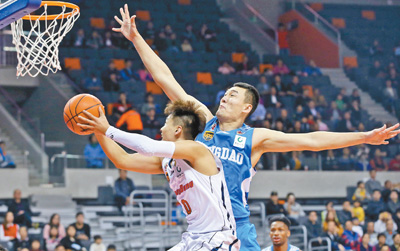 1月23日,青島隊球員蘇偉(后)在比賽中封蓋對手上籃。當日,在2017—2018賽季中國男子籃球職業聯賽(CBA)第三十輪比賽中,廣東隊主場以119∶104戰勝青島隊。當日其他比賽結果為:新疆125∶108同曦,山東126∶100四川,江蘇110∶92八一,北京108∶92吉林。X7X安康新聞網