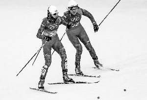 2月21日,平昌冬奧會越野滑雪女子團體短距離自由技術半決賽在阿爾卑西亞滑雪中心進行。由池春雪和李馨組成的中國隊以17分35.94秒的成績排名B組第九無緣決賽。圖為池春雪(右)與李馨在半決賽中。 本報特派記者 魏征攝