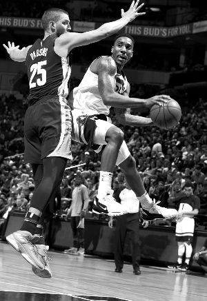 蒂格(右)拿下全場(chǎng)最高的25分,卻無法挽救森林狼的敗局。