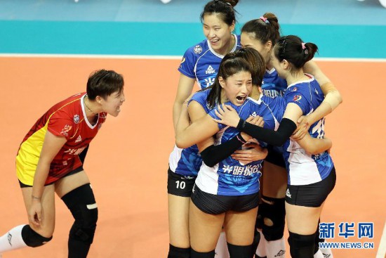 新華社上海3月31日電(記者郭敬丹、朱翃)31日下午,2017/18賽季中國女排超級聯賽決賽第六回合在上海盧灣體育館打響。手握冠軍點的上海隊未能在主場迎來闊別17年之久的聯賽冠軍,反倒是背水一戰的天津女排力挽狂瀾,在被動的情況下將比賽拖入五局鏖戰,并最終以3:2贏得勝利,將總比分追至3:3平。