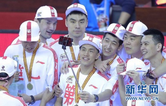 ↑遼寧隊球員在頒獎儀式上自拍新華社記者王東震攝2Tj安康新聞網