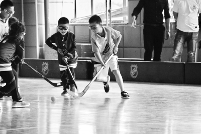 穿著普通運動鞋在旱地上也能打“冰球”?沒錯。在北京市冰球運動協會的推動下,世界頂級冰球聯盟NHL(北美職業冰球聯賽)日前在京啟動“NHL旱地冰球項目”,京城4所小學的師生率先接受培訓,并參加了比賽,孩子們在場上打得不亦樂乎。