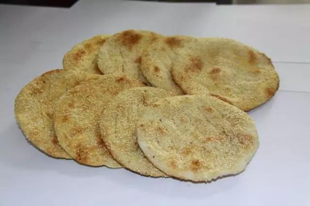 又叫芝麻餅,是一種圓形的烙餅,饃上沾滿芝麻,餅上每隔指許,剁有似斷非斷的刀印。漢陰炕炕饃這一風(fēng)味食品,便于久貯,易于攜帶,在陜南久享盛譽,流傳至今