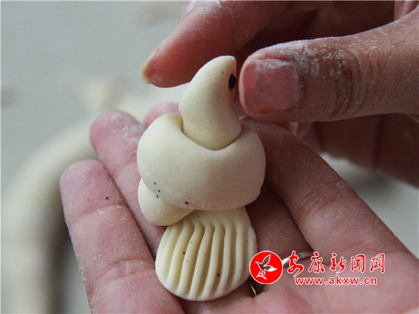 花饃技藝傳承人胡志霞告訴記者:“剛開始就是覺得這個制作過程很有趣,一雙手能做出那么多造型,驚訝之余就特別想去學習這個手藝,那時候做花饃都是由家中長輩制作,自己在一旁看著不能輕易上手,所以我經常都是用地里的泥巴來練習做花饃,不知不覺還真讓我學會了不少花饃的樣式。但是現在大家都一門心思想著掙錢,年輕一代的更是耐不下性子來學習制作花饃,而蒸花饃又是個費神勞力的力氣活,和面、醒面、揉面,既講究干濕均勻,又要注意力道,還要求制作者必須具備精熟的技藝,否則這普通的面團很難做成各種栩栩如生的小動物或花兒形狀的花饃。”
