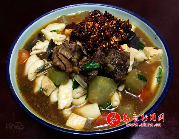 安康吃麻什子講究菜多、汁濃,燴一鍋麻什子起碼得有六七樣子配菜,木耳、黃花、冬瓜、豆腐、洋芋、紅蘿卜、西紅柿等等,更離不開煵好的肉疙瘩。
