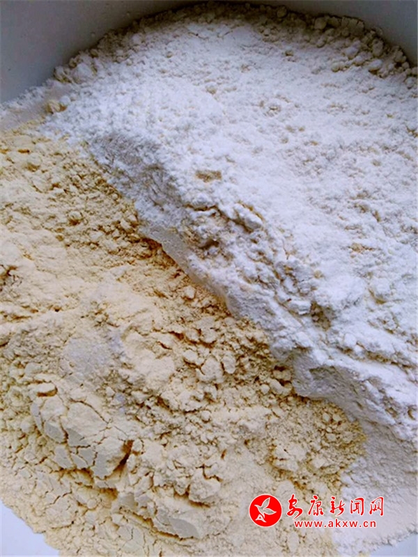 兩摻面,一半豆面與一半麥面在漢江水的調和下,經過反復搓揉摻搟,兩種面粉化作一種新的食材——兩摻面。