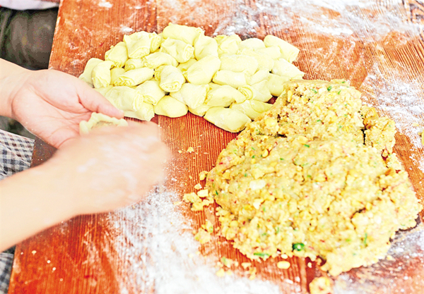 制皮、制餡、制酥、包酥、成型、蓋章、扎眼……四個人在操作時不言不語,只顧埋頭做活!UqG安康新聞網