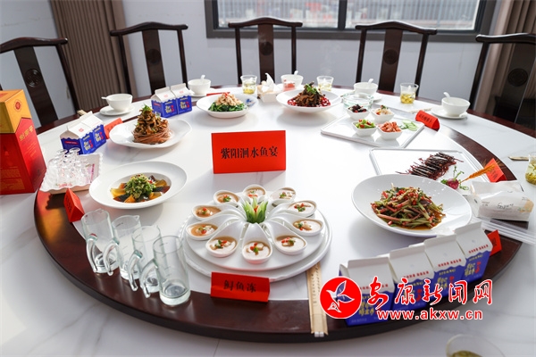 “紫陽洄水魚宴”由8個涼菜,即:香酥小魚、干煸牛肉、茶香魚皮、鱘魚凍、撈汁七彩花生、酸辣四拼、雙色變蛋、涼拌折耳根;8個熱菜即:茶香鱘魚、紫蘇魚片、熗鍋鯉魚、釀羊肚菌、辣子雞、臘味三拼、魚頭燉黑豆腐、當歸白蘿卜燉羊肉;一個湯菜:魚丸湯;3道小吃即:魚肉餃子、茶香餅、紫菜魚餅;主食:金銀米飯、酸菜面和飯后水果拼盤組成。(通訊員 李勝璋)vQP安康新聞網(wǎng)