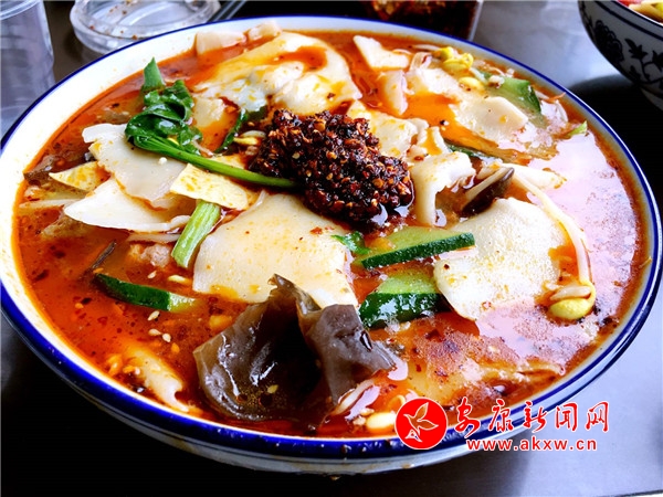 安康人對酸菜面可謂情有獨鐘,一碗手工搟面配上酸菜,澆入紅艷艷的油潑辣子,夏天吃生津解渴,冬天吃驅寒暖胃,喝完酸菜湯出一身汗更是渾身通透。“三天不吃酸,……